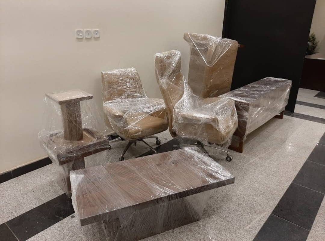 عندما يتم الوصول لمنزل العميل يبدأ النجارين بفك العفش.